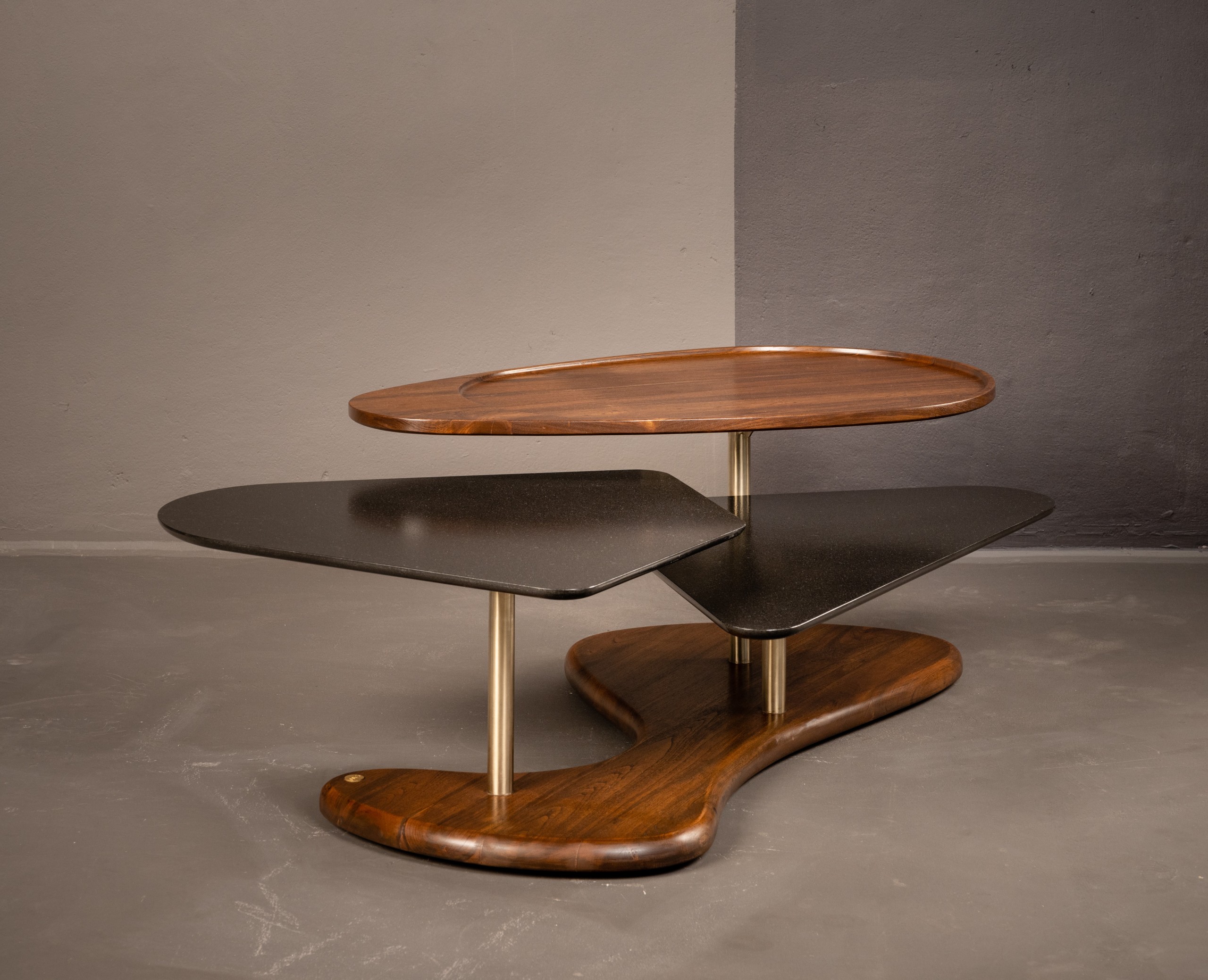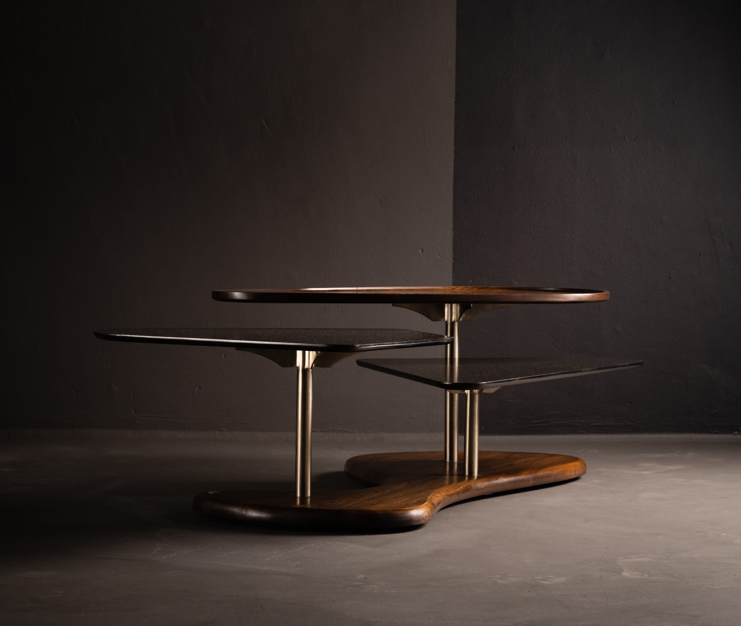 Polished wood meets sculptural minimalism in the Asyn Table, where elegant simplicity transforms functional surfaces into a striking statement piece.