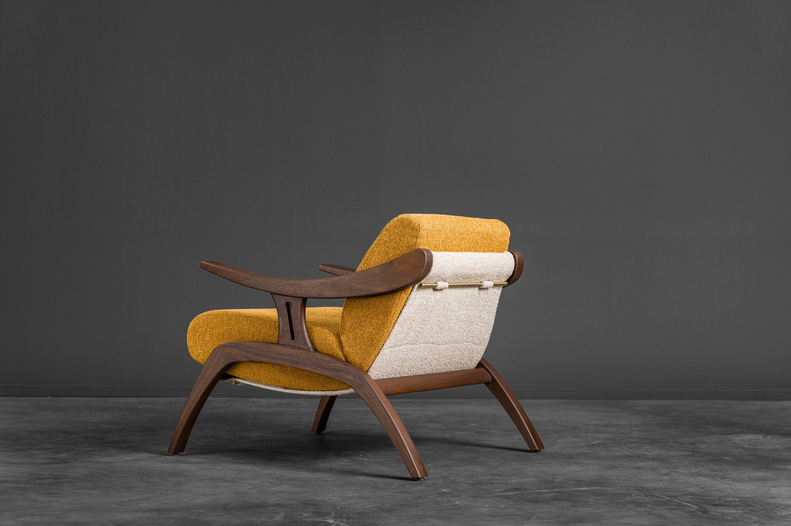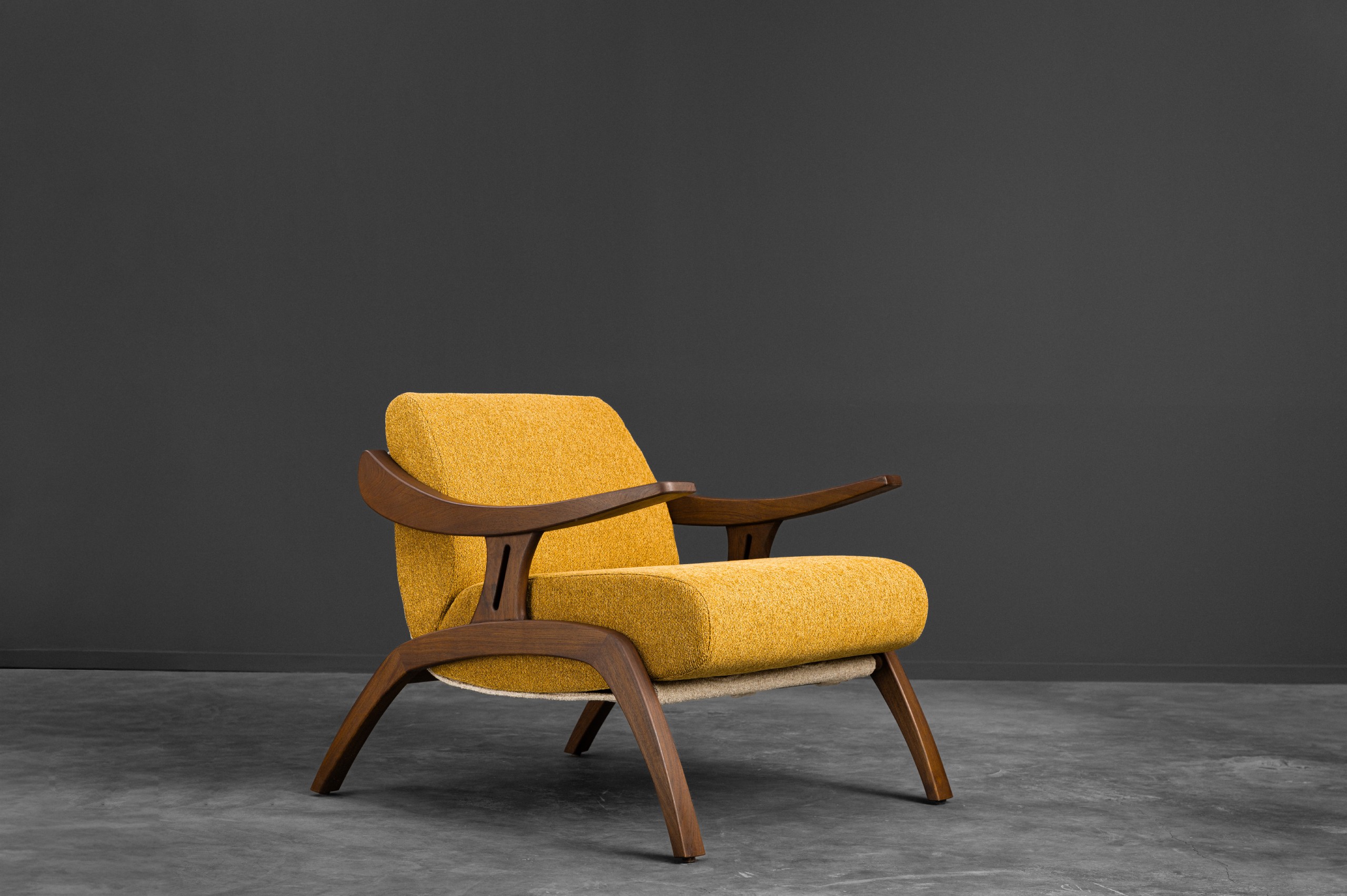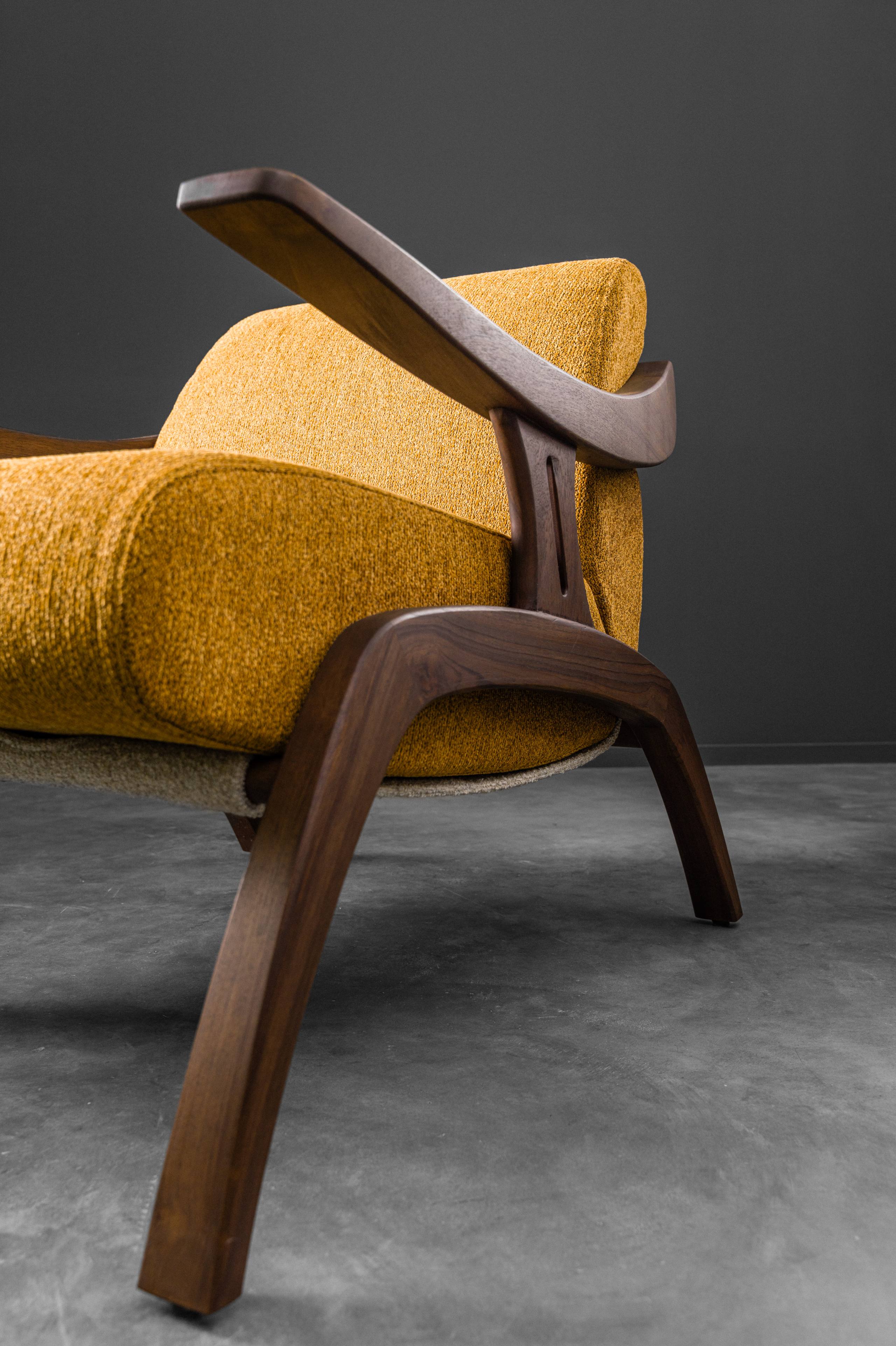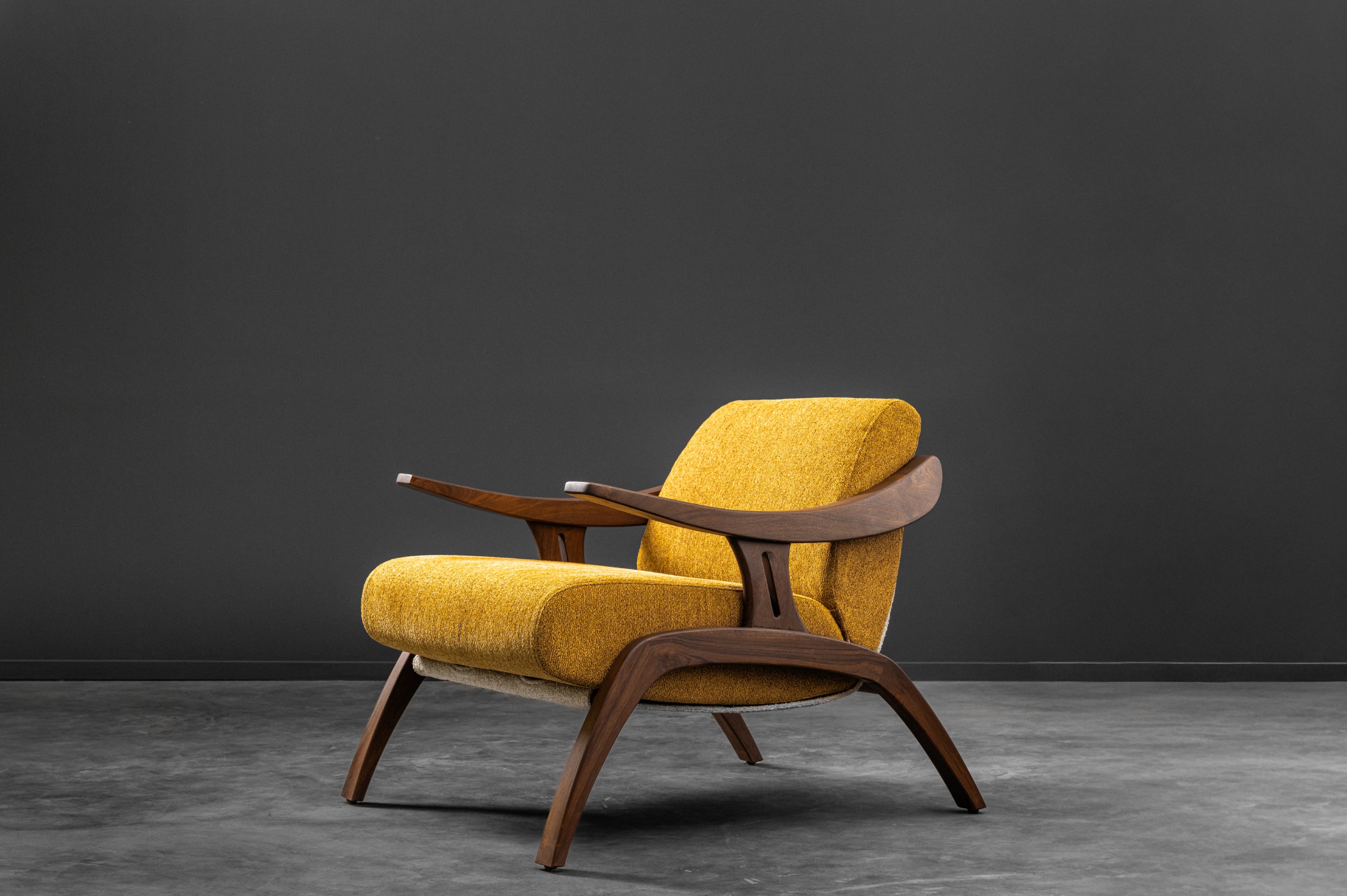 Looking like it has stepped out of a mid-century sketchbook, the May Chair is a statement of quiet confidence. With its solid wooden frame curving effortlessly into the armrests, it carries a sculptural elegance that feels both nostalgic and modern. Designed for comfort without compromise, the MAY Chair stands as both a conversation starter and a timeless companion for refined interiors.