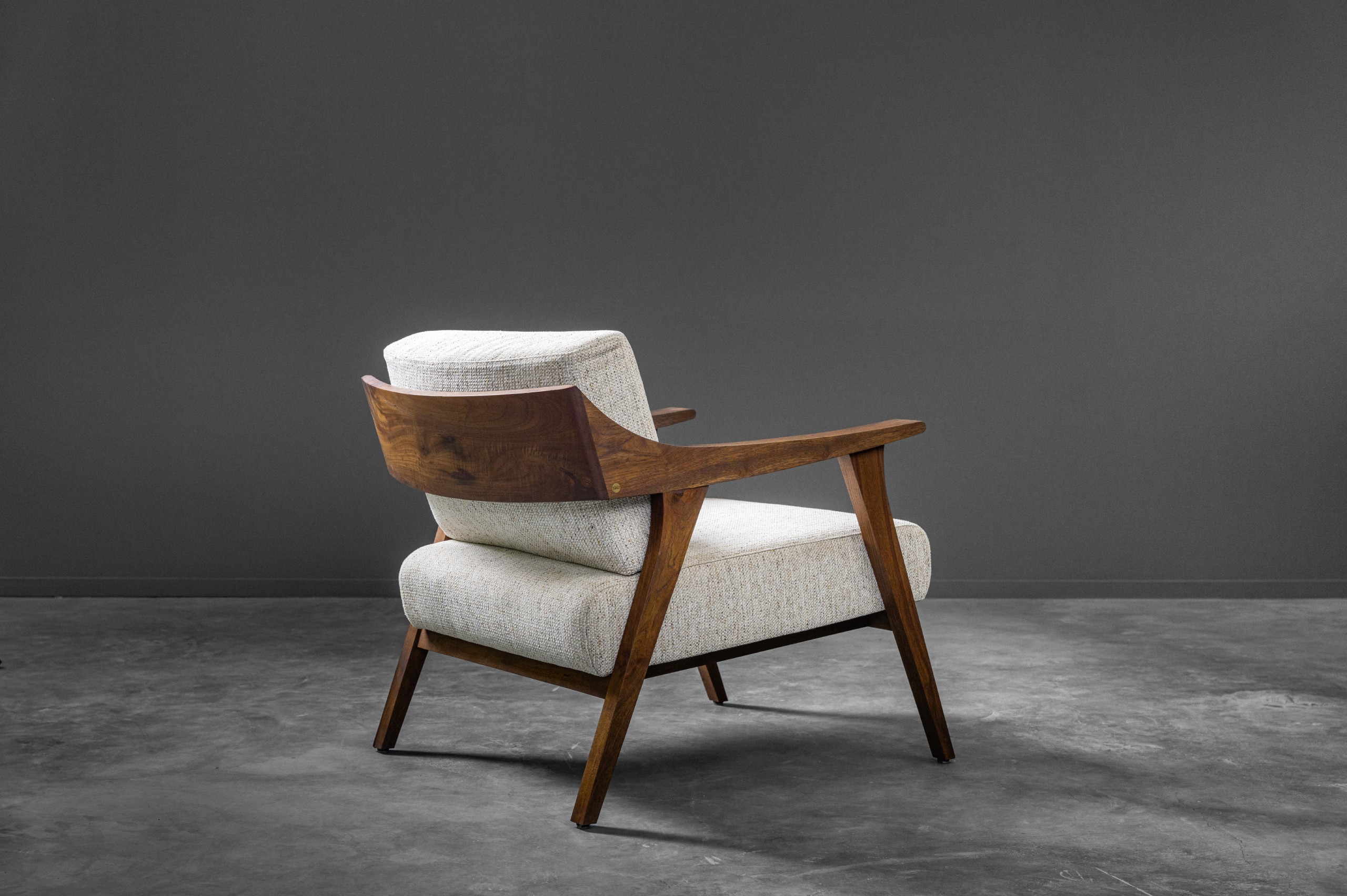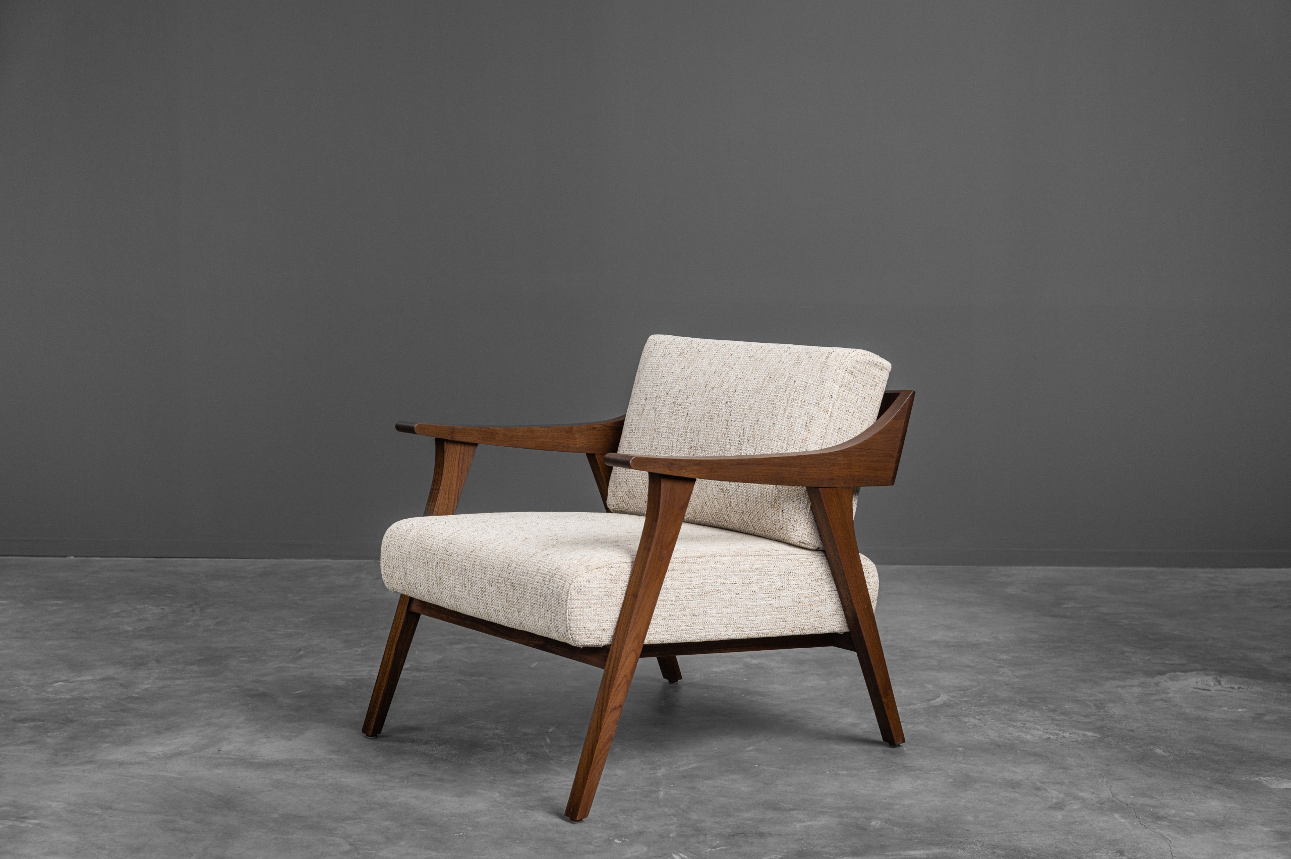 This chair looks from a distance and is undoubtedly the epitome of comfort and luxury. Curl up with a book, with crossed legs and a blanket, or finish up your daily drawing on your ipad. After a very tiring day, this chair is the right place to unplug oneself before sleep. The body is effortlessly relaxed by the thick white fabric cushions, while the legs and hands carved out of wood do not shy from offering you a pleasant rest of the limbs.