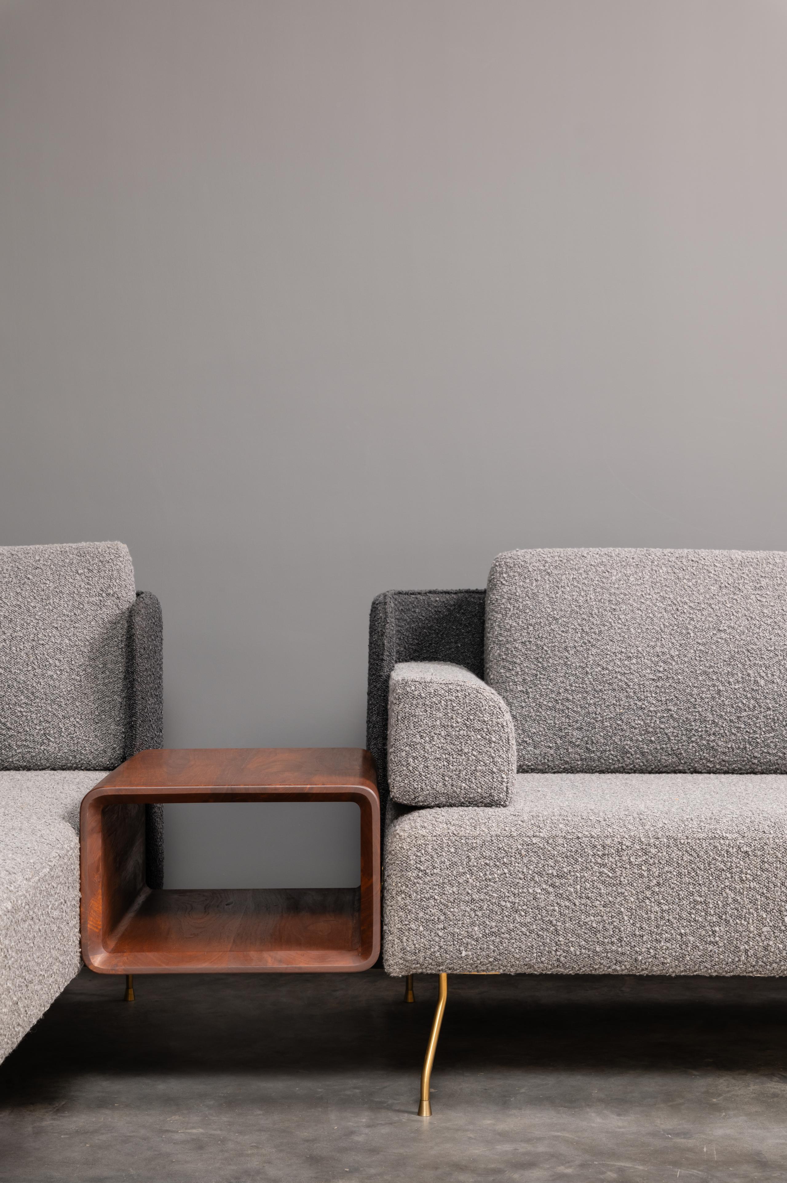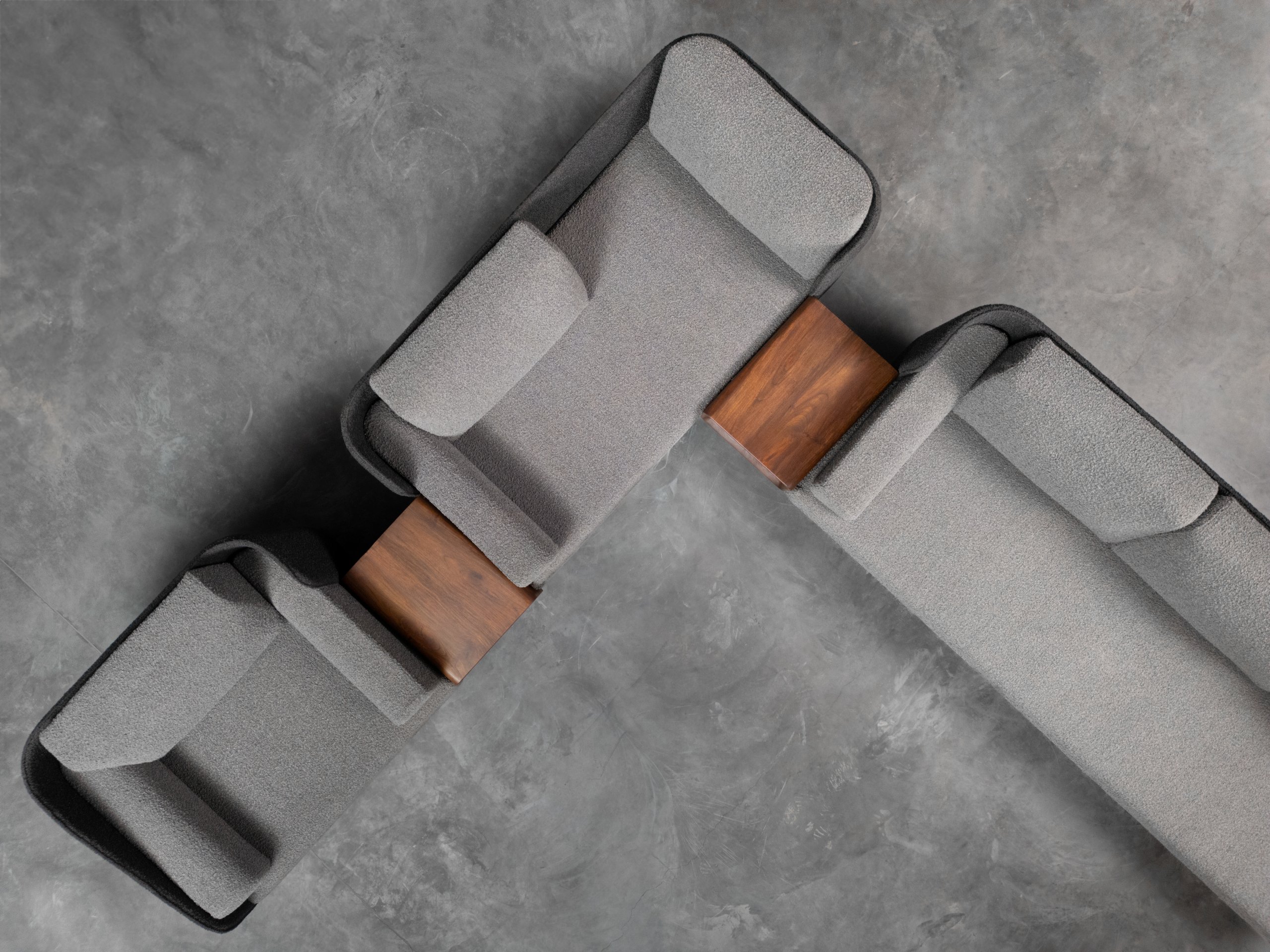 Discover the perfect blend of flexibility and elegance with our modular sectional Cocoon L-Sofa. Designed with meticulous attention to detail, this sofa allows you to create your ideal seating arrangement by combining individual units- single, double, triple and lounge seater. The simple form, comprising blocky volumes, is enveloped in a luxurious upholstered wrap that provides a refined and premium feel.