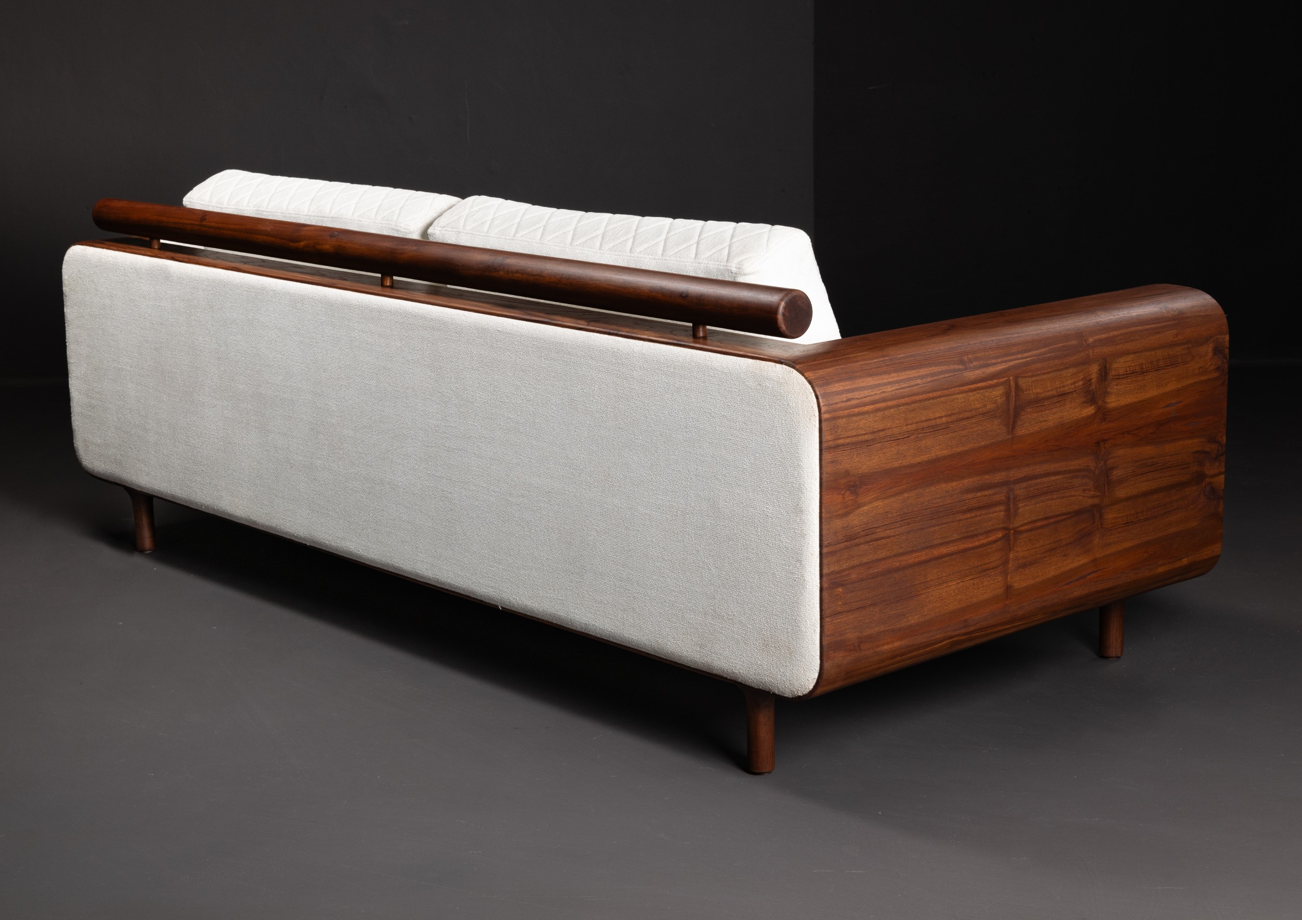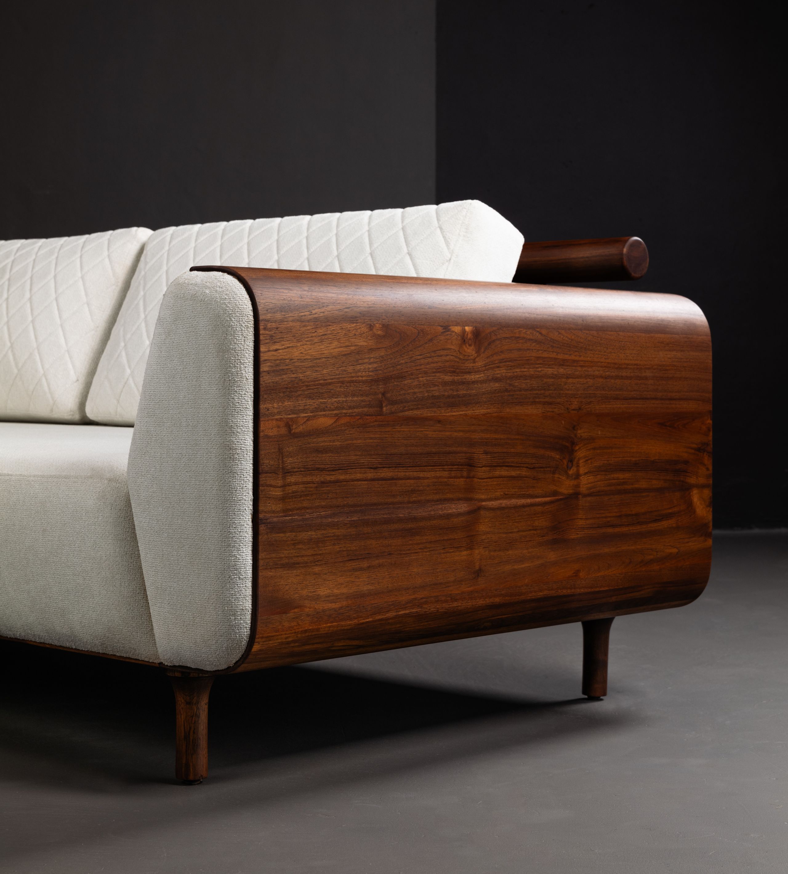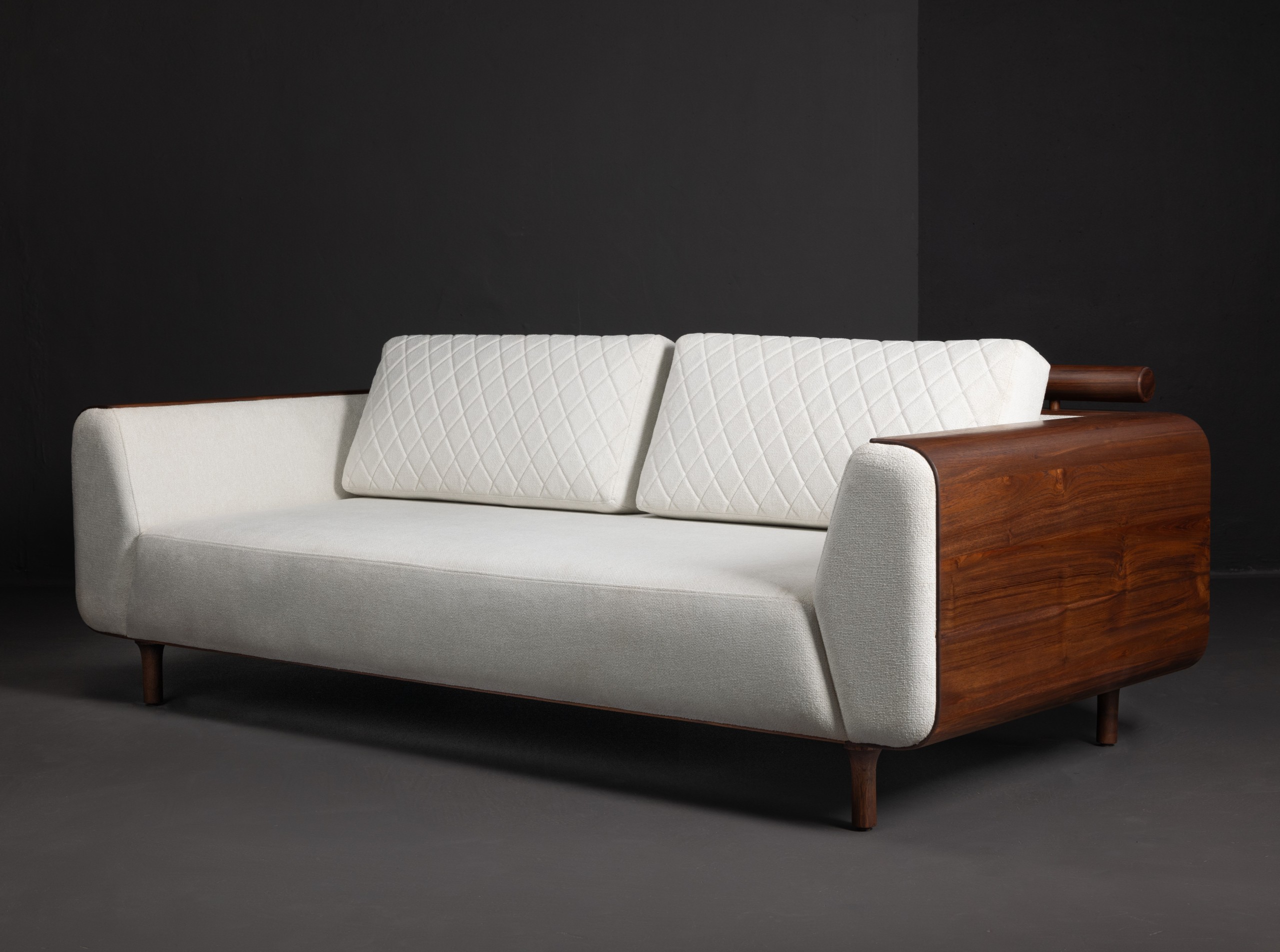 Reflecting just the right amount of light, be sure to pair up the wrap sofa with the soft hues of your new bar’s lighting. Indicative of its name, the thin sheet of teak wood is wrapped all the way around the base of the sofa to the turns of the armrests. The cushions are a honeycomb texture that complement the turned teak wood textures on the back rail and provide gentle support to your back as you recline after a hard day. Wrapped in luxury and sophistication, the sofa is an ideal addition to your professional as well as domestic settings.