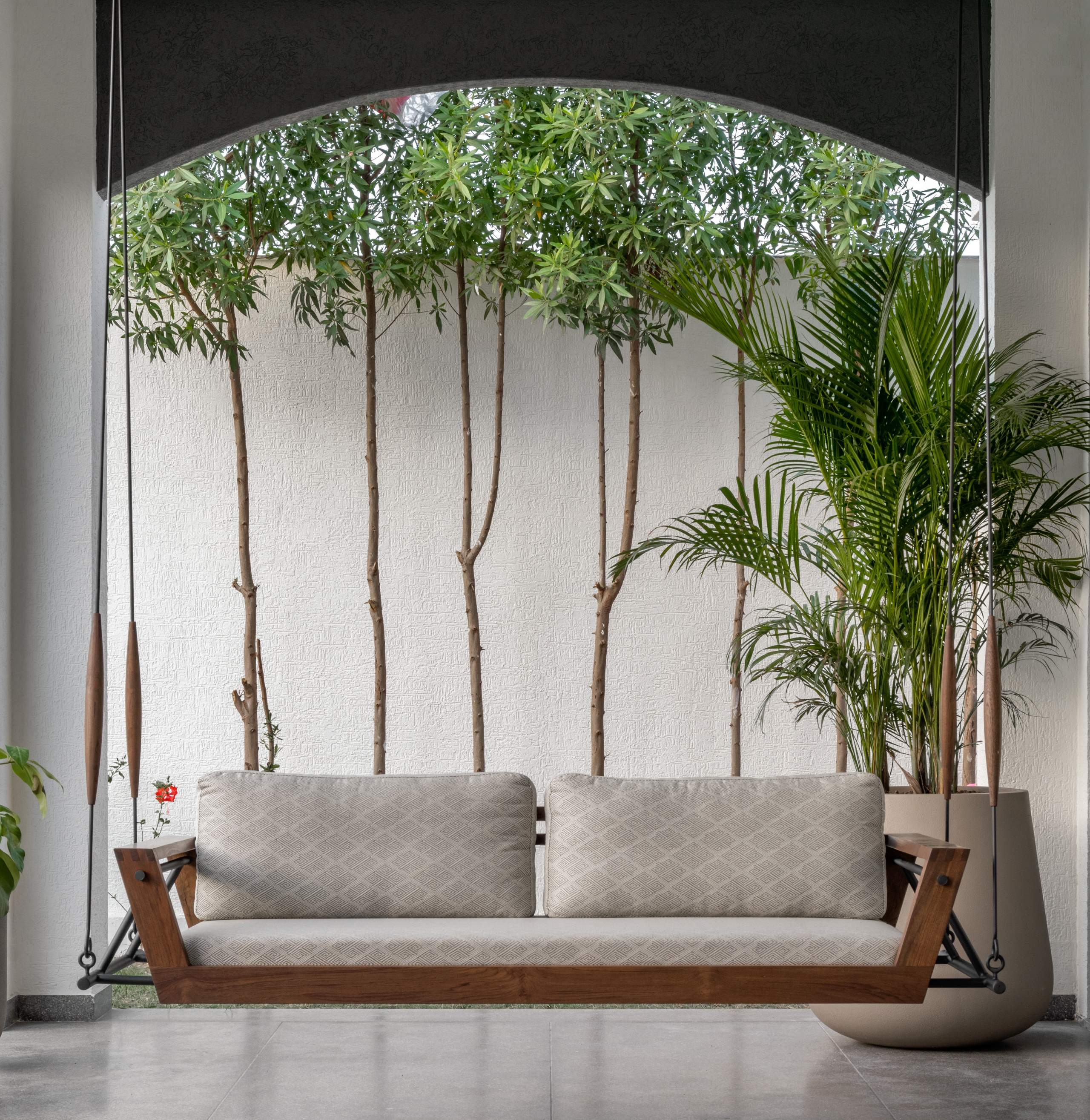 Our Hexa Swing blends a sturdy wooden and metal frame with modern style and lasting strength. The back showcases elegant cane weaving, while the upholstered seat offers a plush, comfortable retreat. With its robust build and hexagonal design, this swing combines durability, artistry, and contemporary elegance — a perfect addition to any space.